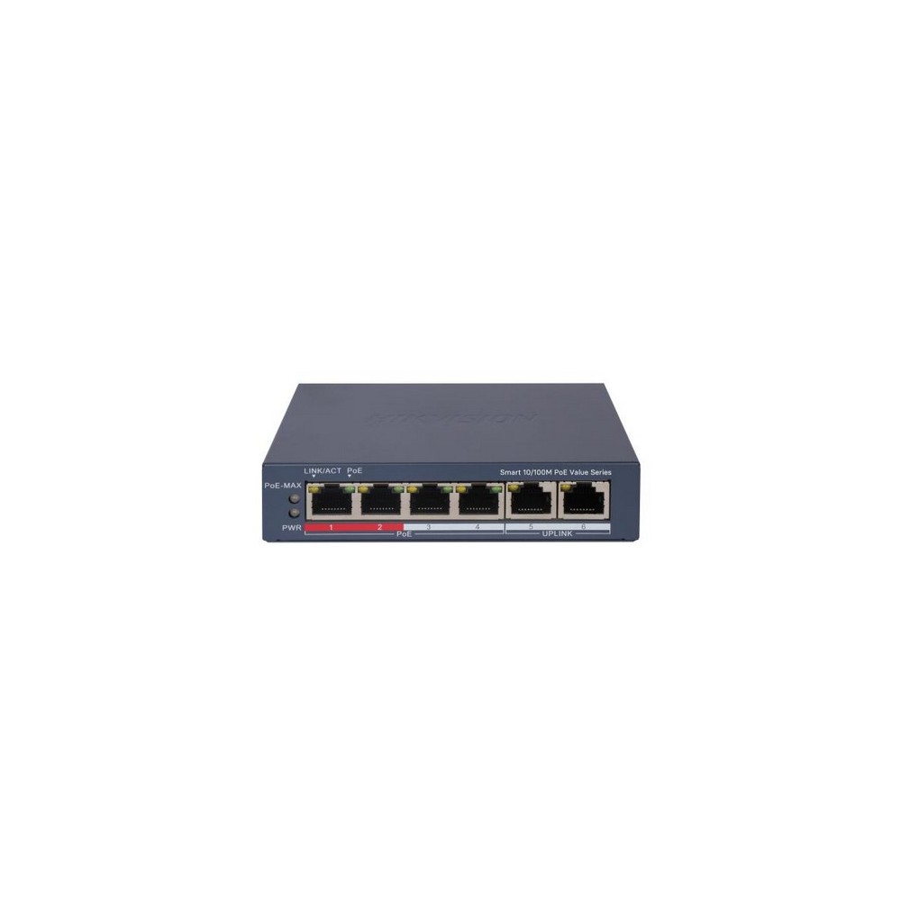 DS-3E0106P-E/M 6/4 PoE switch, 4x PoE 100Mbps, 2x uplink 100Mbps, max.35W