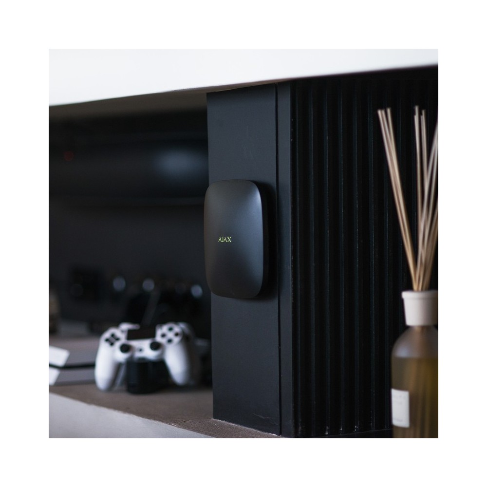 Hub 2 Plus 12 V - Centrální ovládací panel je vybaven napájecí jednotkou umožňující jeho napájení nízkonapěťovým stejnosměrným zdrojem v rozmezí 8 – 20 V / 1 A DC. Centrální ovládací panel řídí všechna zařízení Ajax v systému a upozorňuje uživatele na otevřené dveře, rozbití okna, nebezpečí požáru a zaplavení vodou.