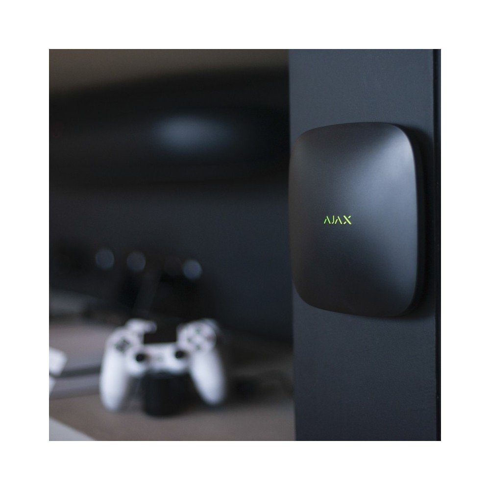 Centrální ovládací panel Hub 2 řídí všechna připojená zařízení a detektory Ajax v systému, aby uživatele varoval v případě otevření dveří, rozbití okna, nebezpečím požáru nebo hrozícím zaplavením. Pokud do střeženého objektu vnikne narušitel, Hub 2 odešle uživatelům a poplachovému přijímacímu centru snímky pořízené detektory pohybu s kamerou MotionCam. Můžete mít přehled o situaci ve střeženém objektu v případě poplachu, aniž byste museli žít pod neustálým dohledem bezpečnostních kamer. Centrální ovládací panel je vybaven napájecí jednotkou umožňující jeho napájení nízkonapěťovým stejnosměrným zdrojem v rozmezí 8 – 20 V / 1 A DC.